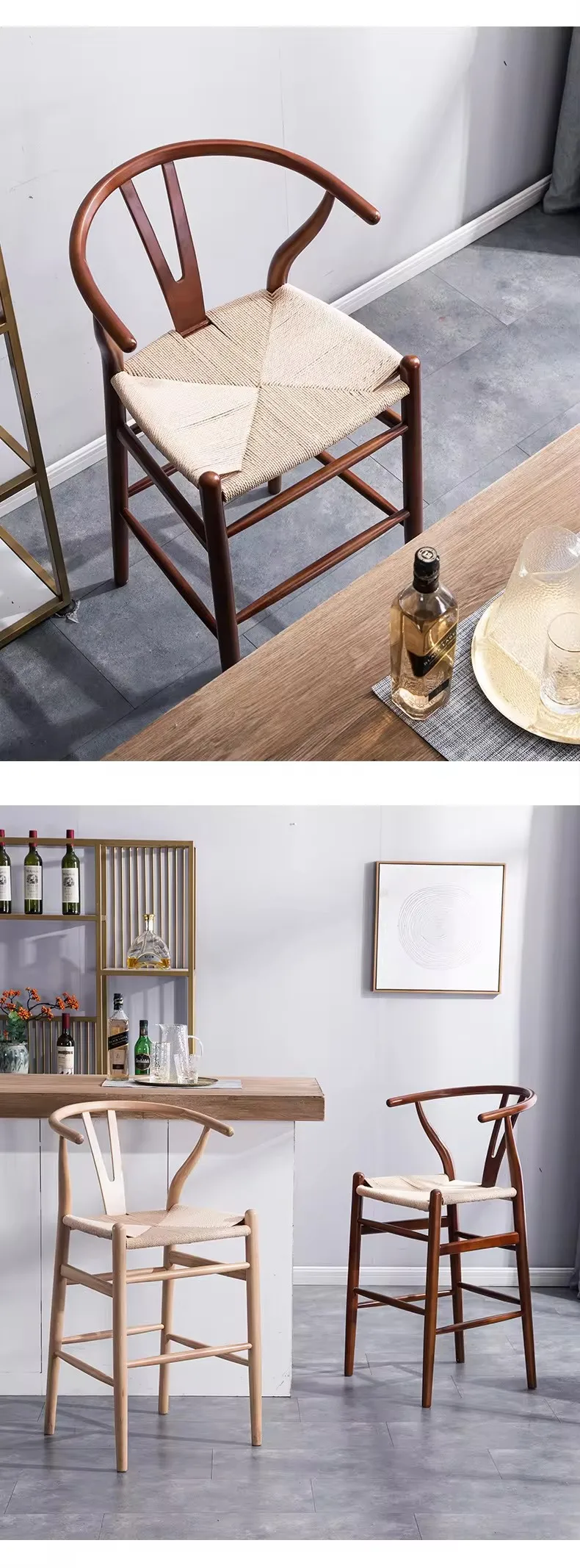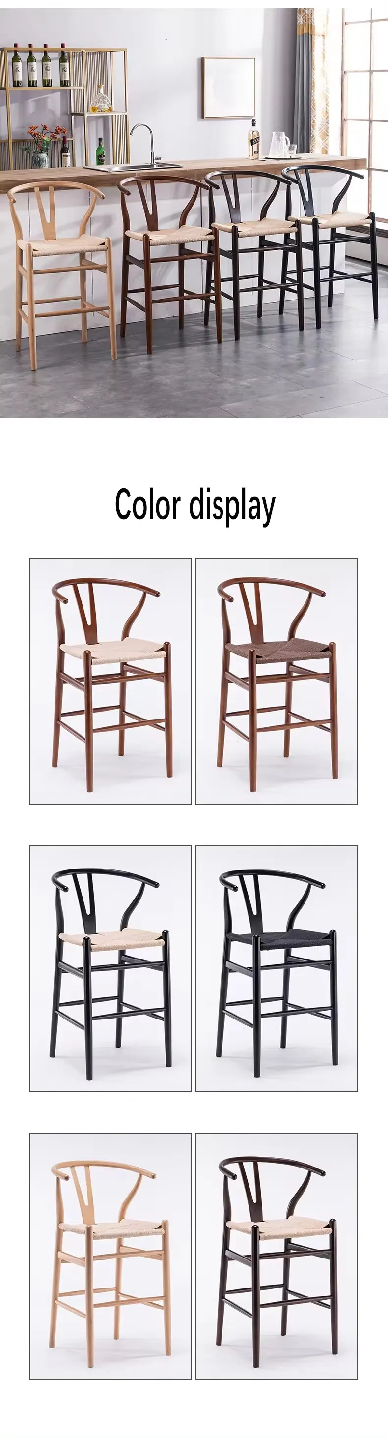 Factory Supplies High Cane Dining Chair Solid Wood Wishbone Bar Stools High Quality Rattan Bar Stool for Cafe Shop